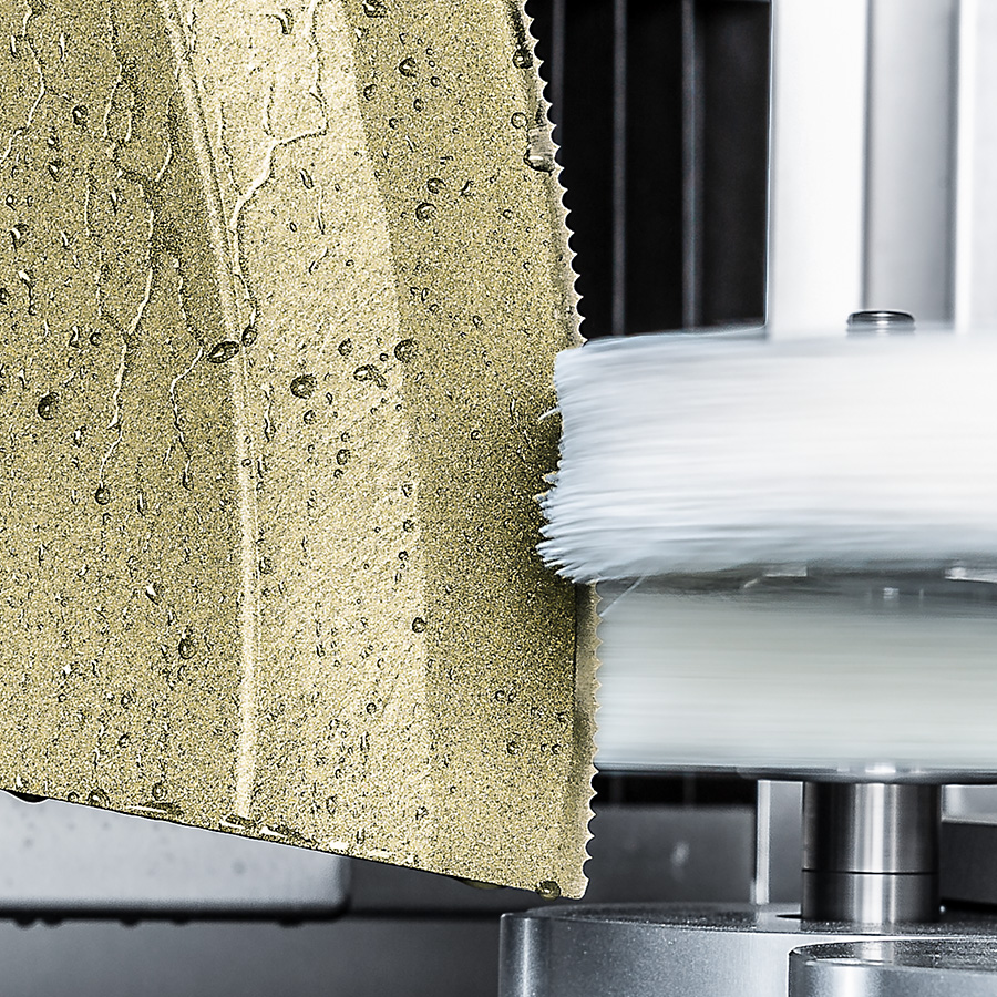 De plus, l’A 95 est parfaite pour faire la denture des couteaux trancheurs ou la renouveler. Dès lors qu’une denture a été réalisée sur l’A 95, la machine trouve toujours le point de départ exact de la première dent. Différentes formes de dents, par ex. pointues, en creux ou ondulées, sont enregistrées dans la mémoire et peuvent être récupérées très facilement.