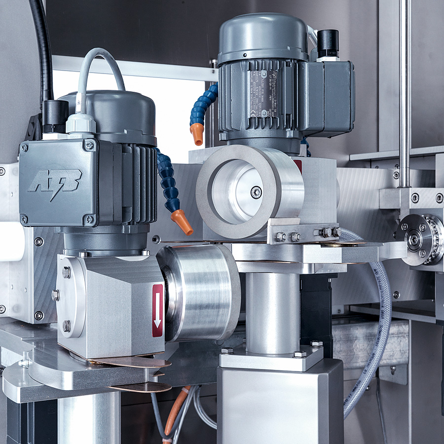 L’A 950 III fonctionne avec des meules d’affûtage motorisées avant et arrière. Ceci permet d’obtenir une arête de coupe précise sur les couteaux trancheurs. La pression d’affûtage est générée de manière pneumatique et peut être régulée de manière précise. La quantité de matière enlevée sur l’outil de coupe est minime.Entraînement