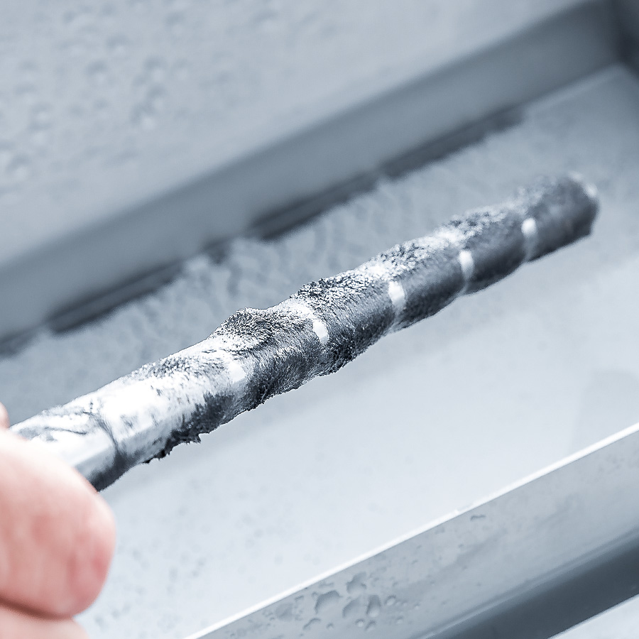 La matière enlevée est collectée dans le réservoir à eau. Une tige aimantée sépare la zone sale de la zone propre. Cela empêche le retour de la matière enlevée dans le circuit de refroidissement.