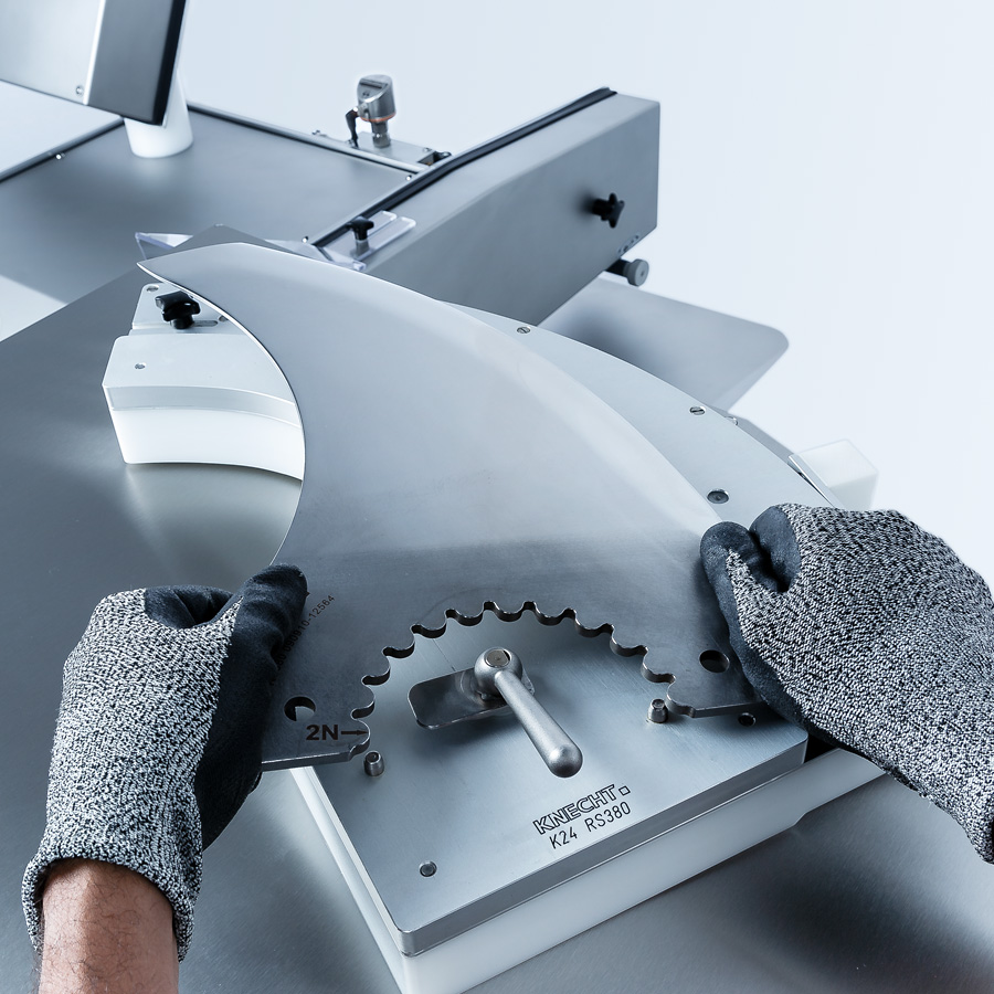Le gabarit contient toutes les informations concernant la forme et la taille du couteau. Chaque gabarit est conçu sur mesure pour chaque type de couteau. La programmation et le réglage complexes ne sont plus nécessaires, ce qui permet une manipulation ultrasimple et rapide: 1 seule minute suffit pour convertir la machine pour l’affûtage d’une autre forme de couteau.